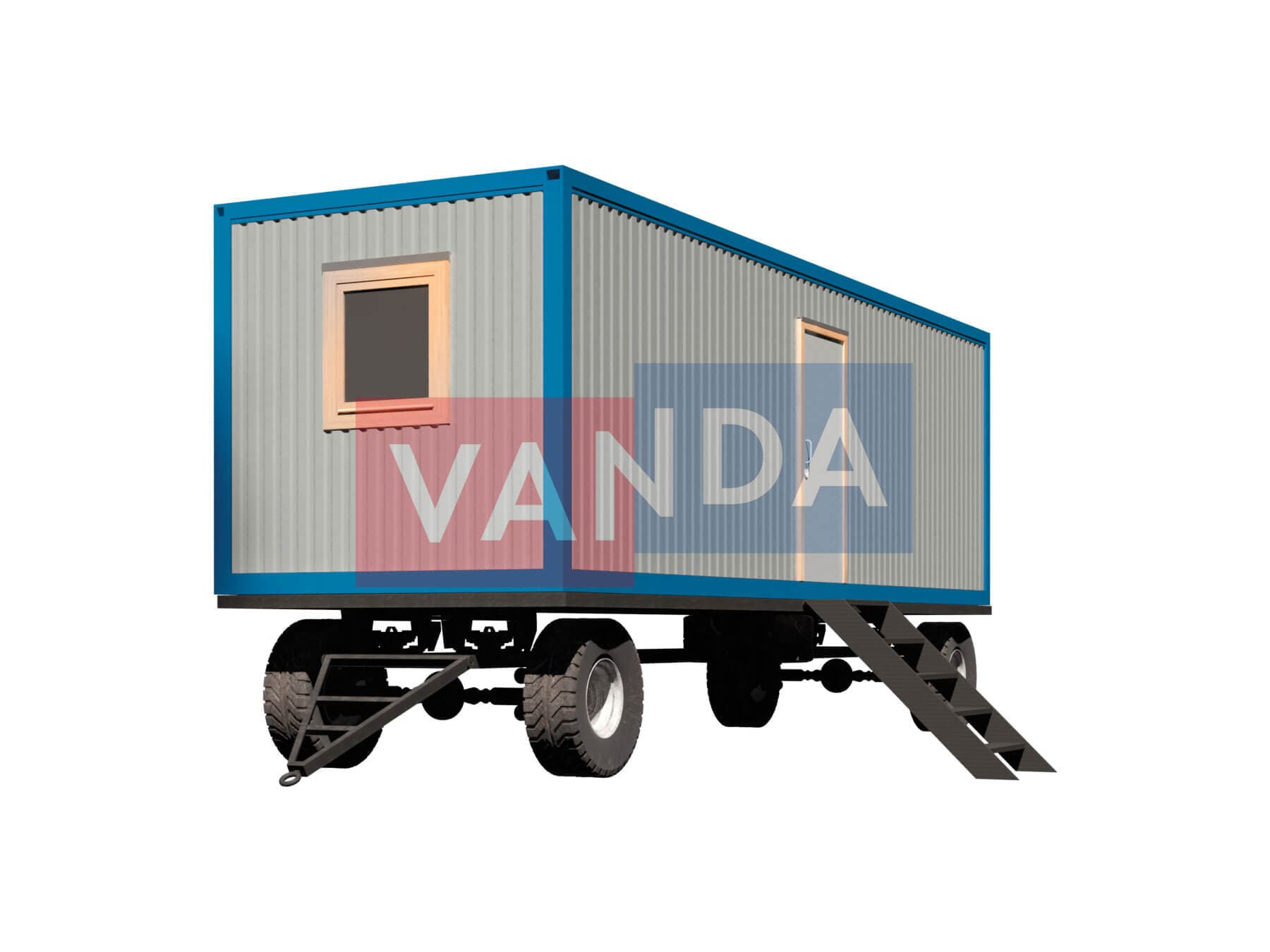 Вагончик на шасси 8,0 x 2,4 изготавливается из несущего каркаса (верхняя и нижняя обвязка): швеллер 100х50х3 мм., угловые стойки: сложно - гнутый угол 90х90х3 мм., крыша блок-контейнера: металл сварной 0,9-1 мм., качественная наружная отделка: оцинкованный профлист, внутренняя отделка стен: Вагонка деревянная, внутренняя отделка потолка: Вагонка деревянная, вспомогательный деревянный каркас (стены): брусок 40х75 мм., лаги пола: обрезная доска 40х100 мм., лаги потолка: обрезная доска 40х100 мм., выполнено утепление: Минеральная вата «ISOVER» – 50 мм. и пароизоляция: плёнка техническая, черновой пол состоит из: обрезная доска 20 мм. (2 сорт), чистовой пол покрыт: ДСП строительное 16 мм., отделка пола выполнена из качественных материалов. Контейнер комплектуется окнами: деревянное, двойное остекление 800х1000, входной дверью: ДГ 21-8 обшита снаружи оцинкованным листом, врезной замок и внутренними дверями: ДГ 21-8 (при наличии перегородки). Если в БК присутствуют перегородки, то для них используется: брусок 40х50 мм.