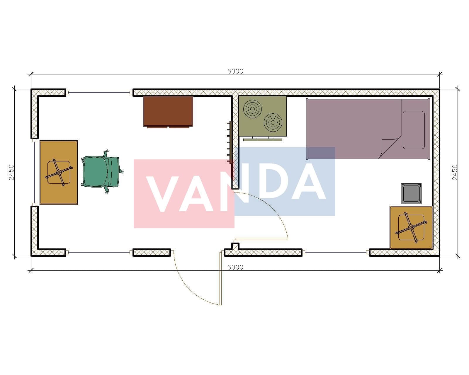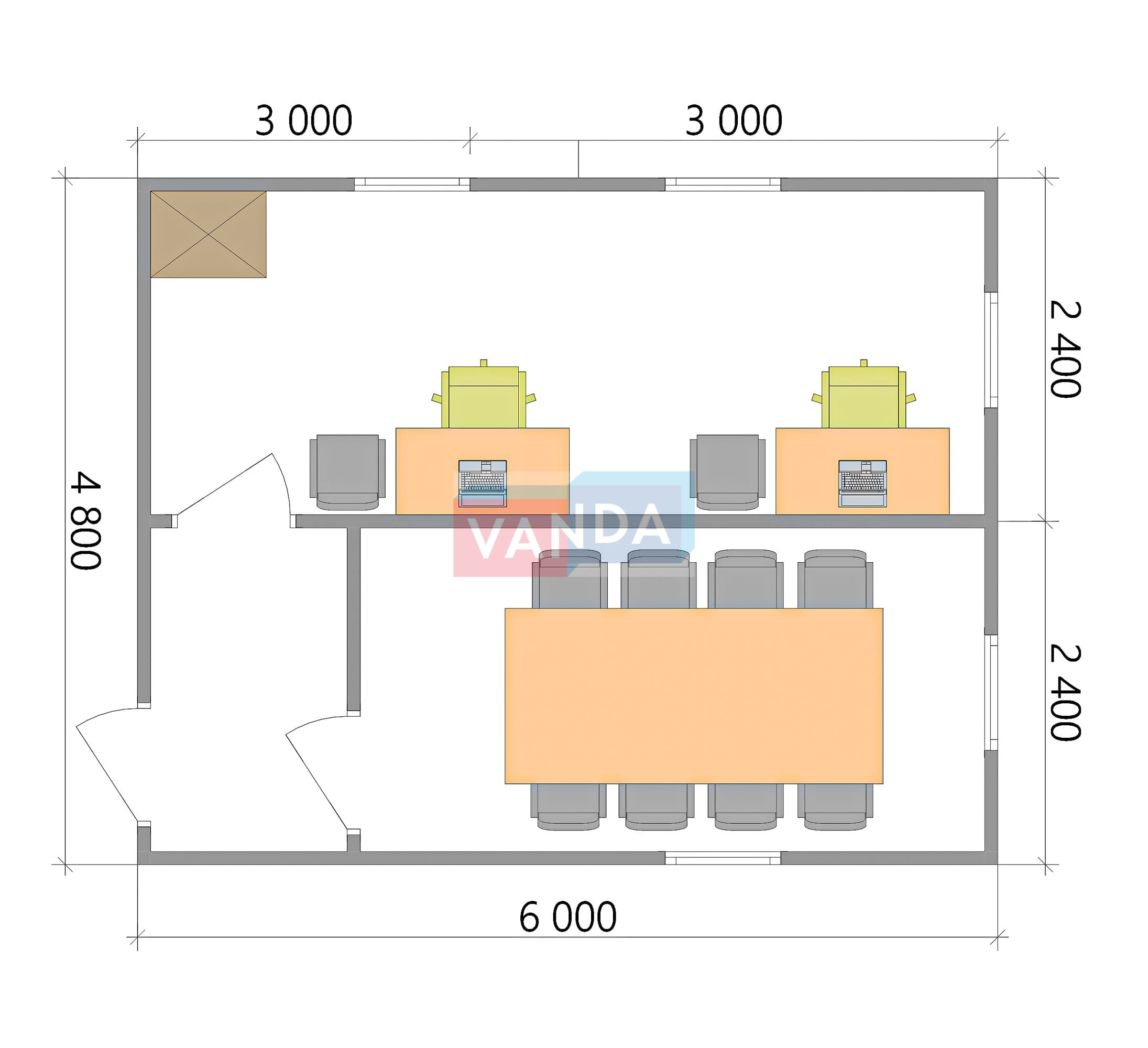 Модульная бытовка с плоской крышей 4.8х6.0 4.8х6.0 28.8 OSB 9 мм. Оцинкованный профлист 500 000 р. Уточняйте у менеджера