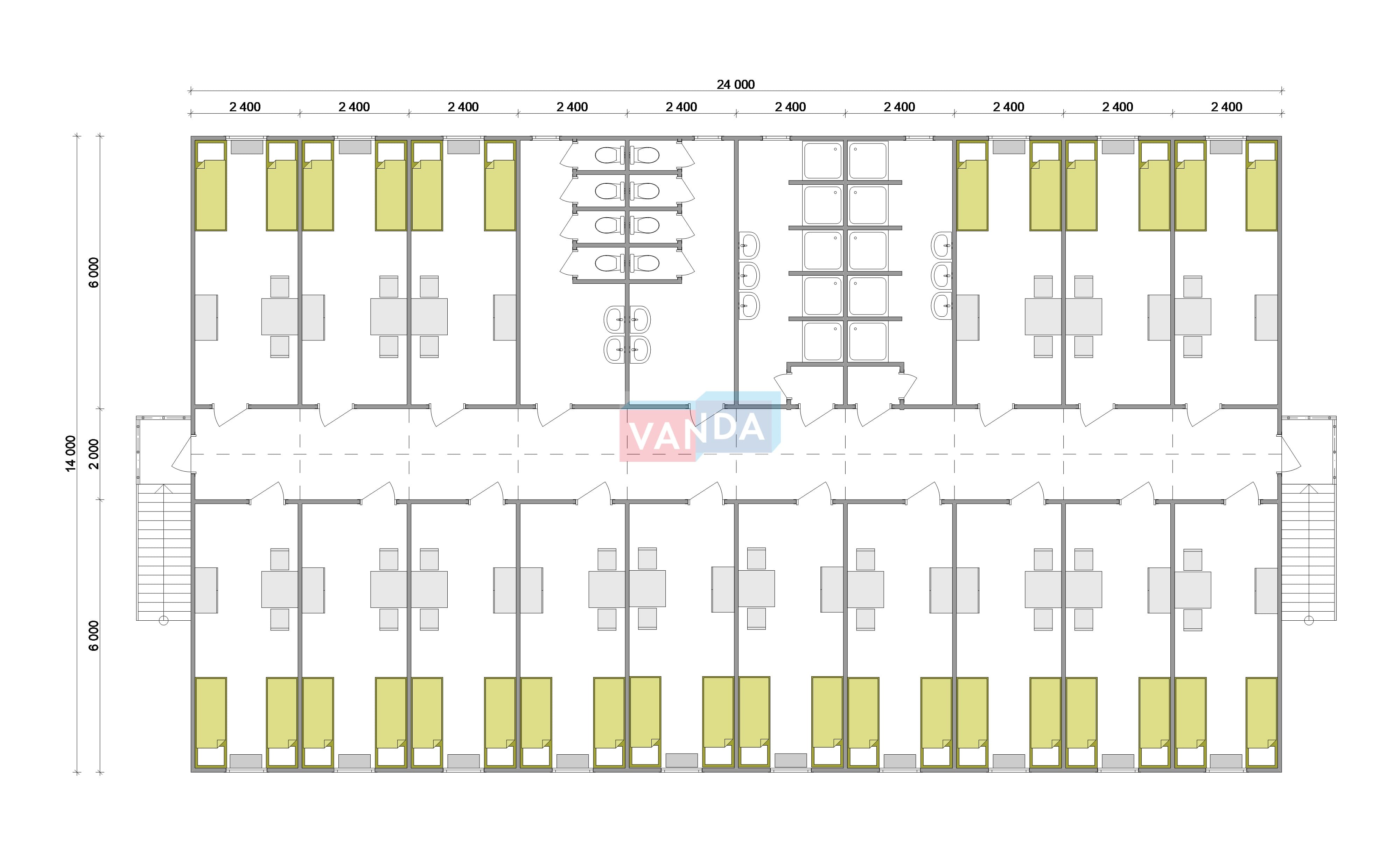 Проект вахтового посёлка 14.0х57,6 14x57.6 806.4 OSB 9 мм. Оцинкованный профлист 20 700 000 р. Уточняйте у менеджера