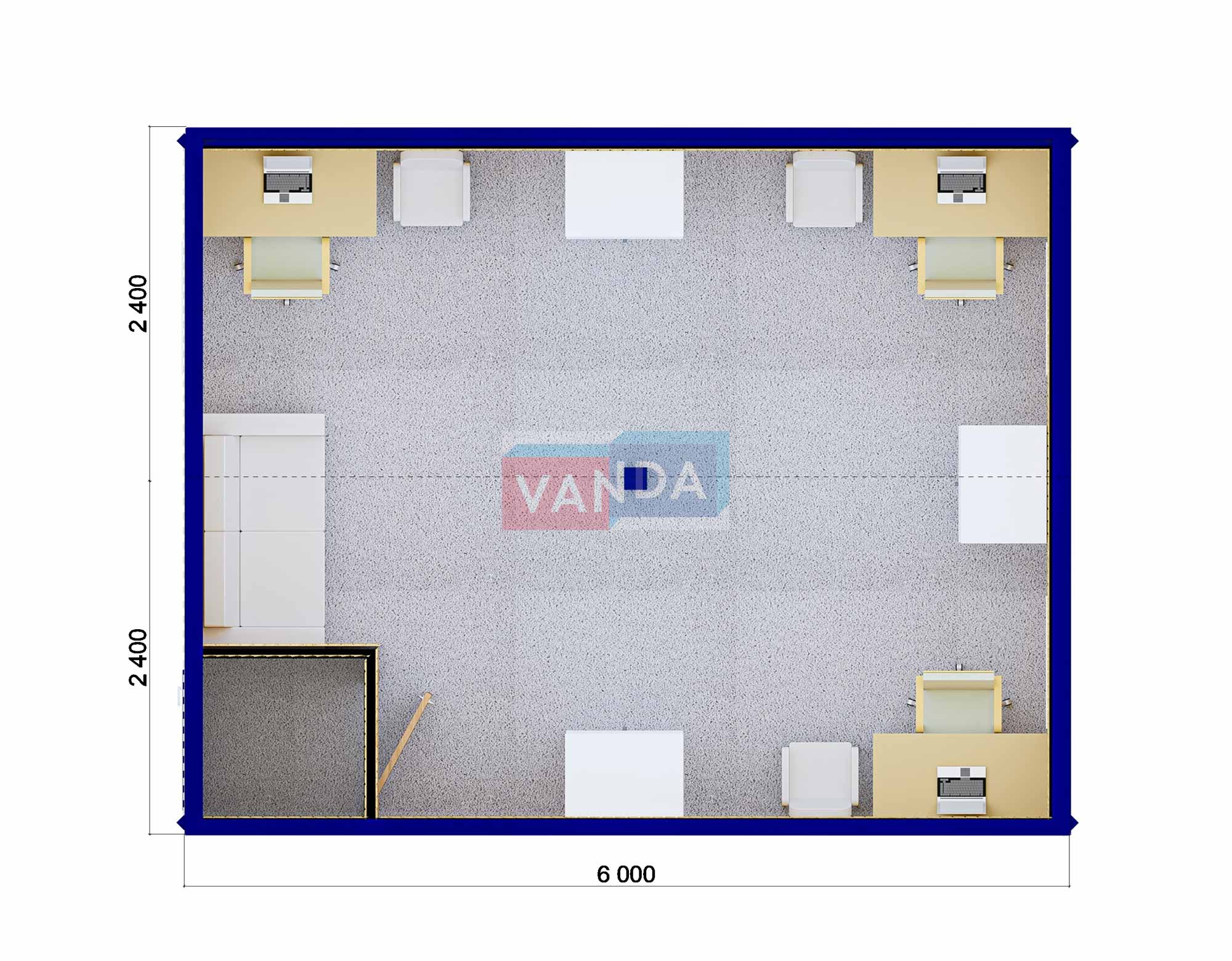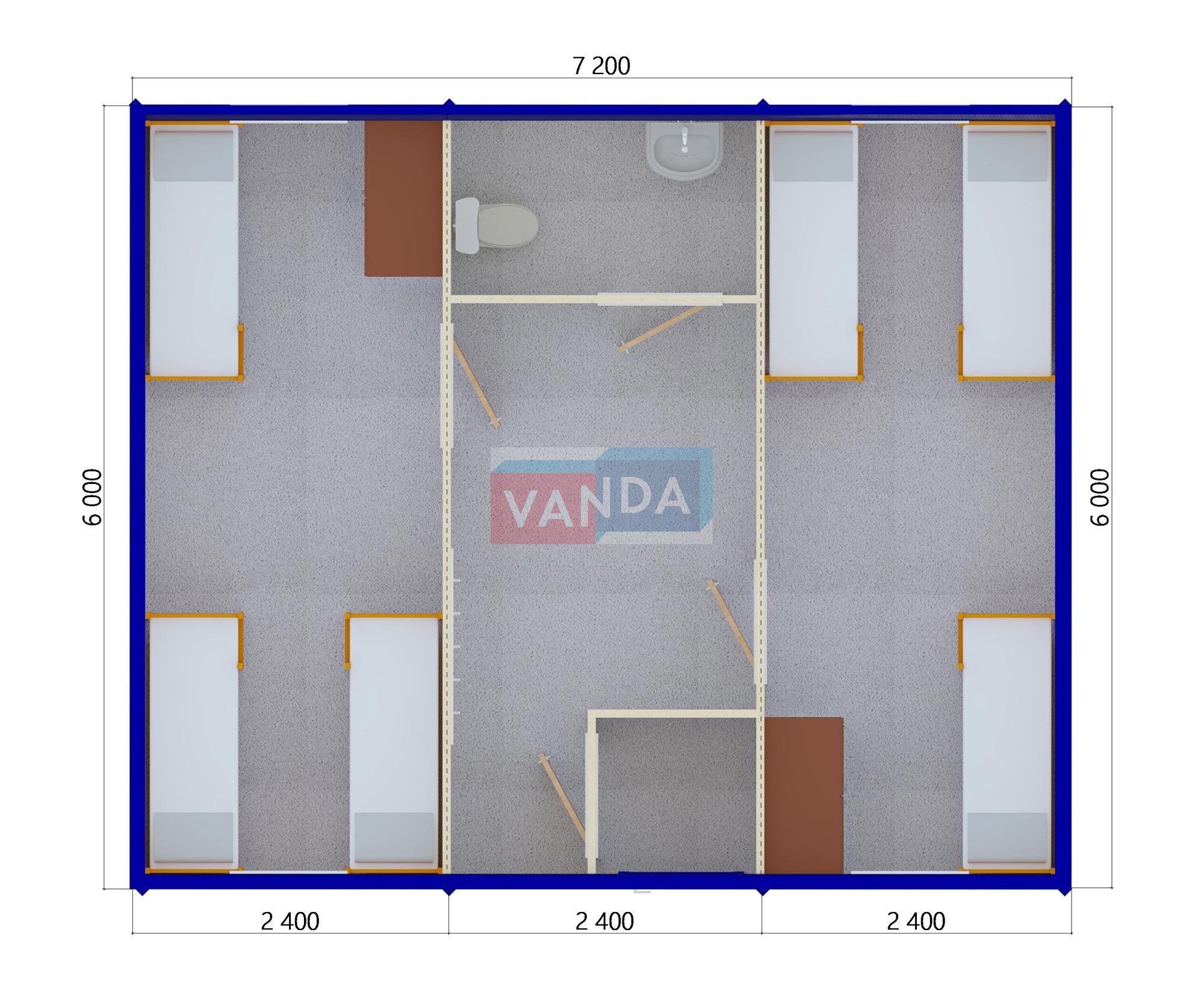 Модульная бытовка с плоской крышей 7.2x6.0 7.2x6.0 43.2 OSB 9 мм. Оцинкованный профлист 650 000 р. Уточняйте у менеджера